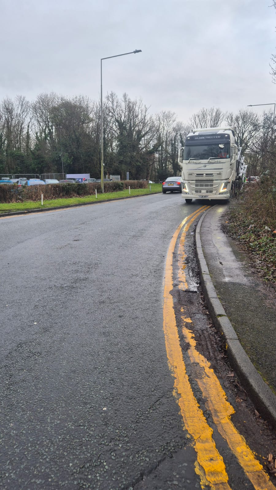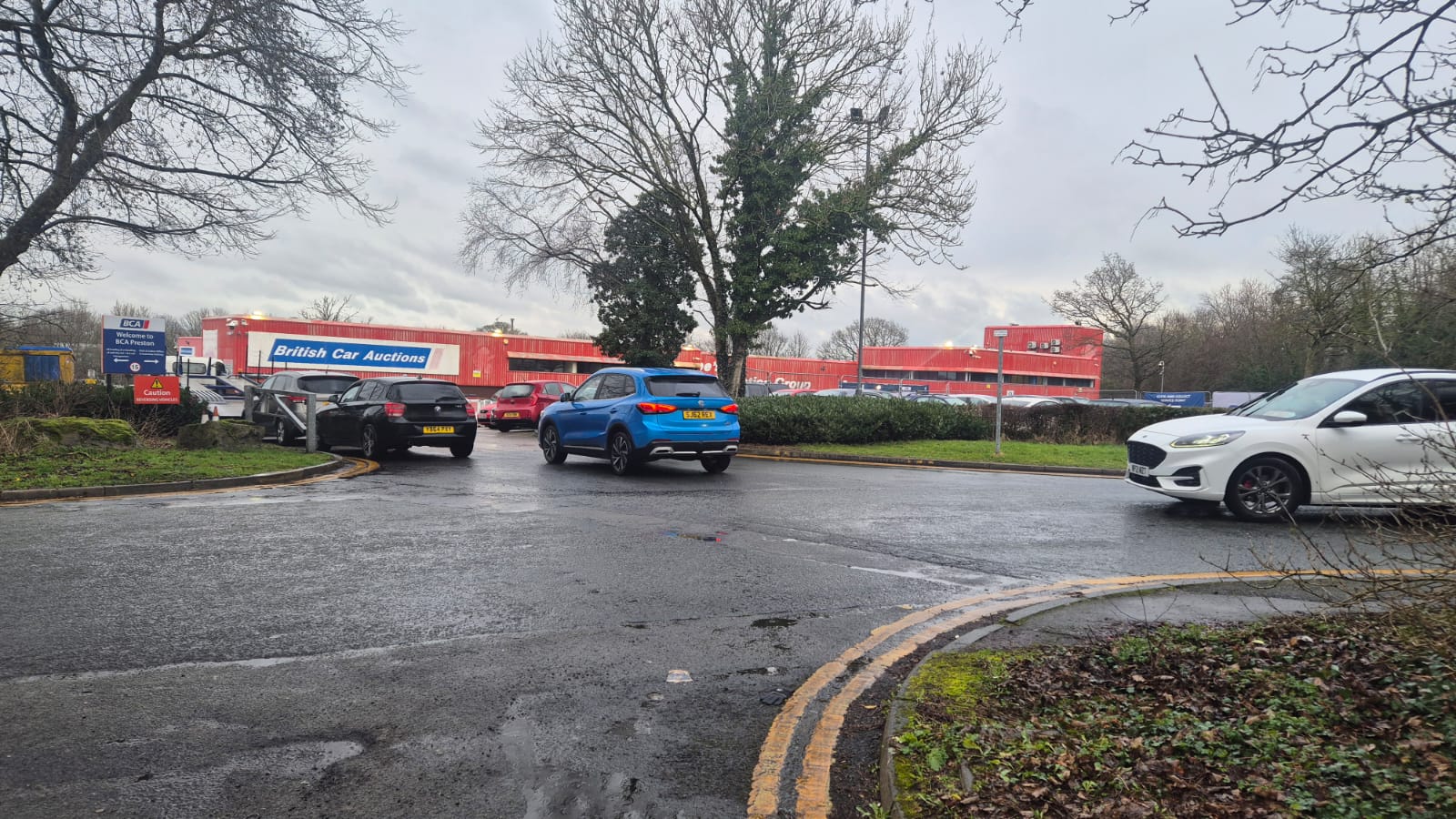 The car auction can not handle the volume of deliveries and customers they get in the space they have. There is a simple solution.Their property runs 150m up Walton Summit Road. There are several old entrances that have been blocked up thet they could reinstate so they have their own decicated enterance from the main road.